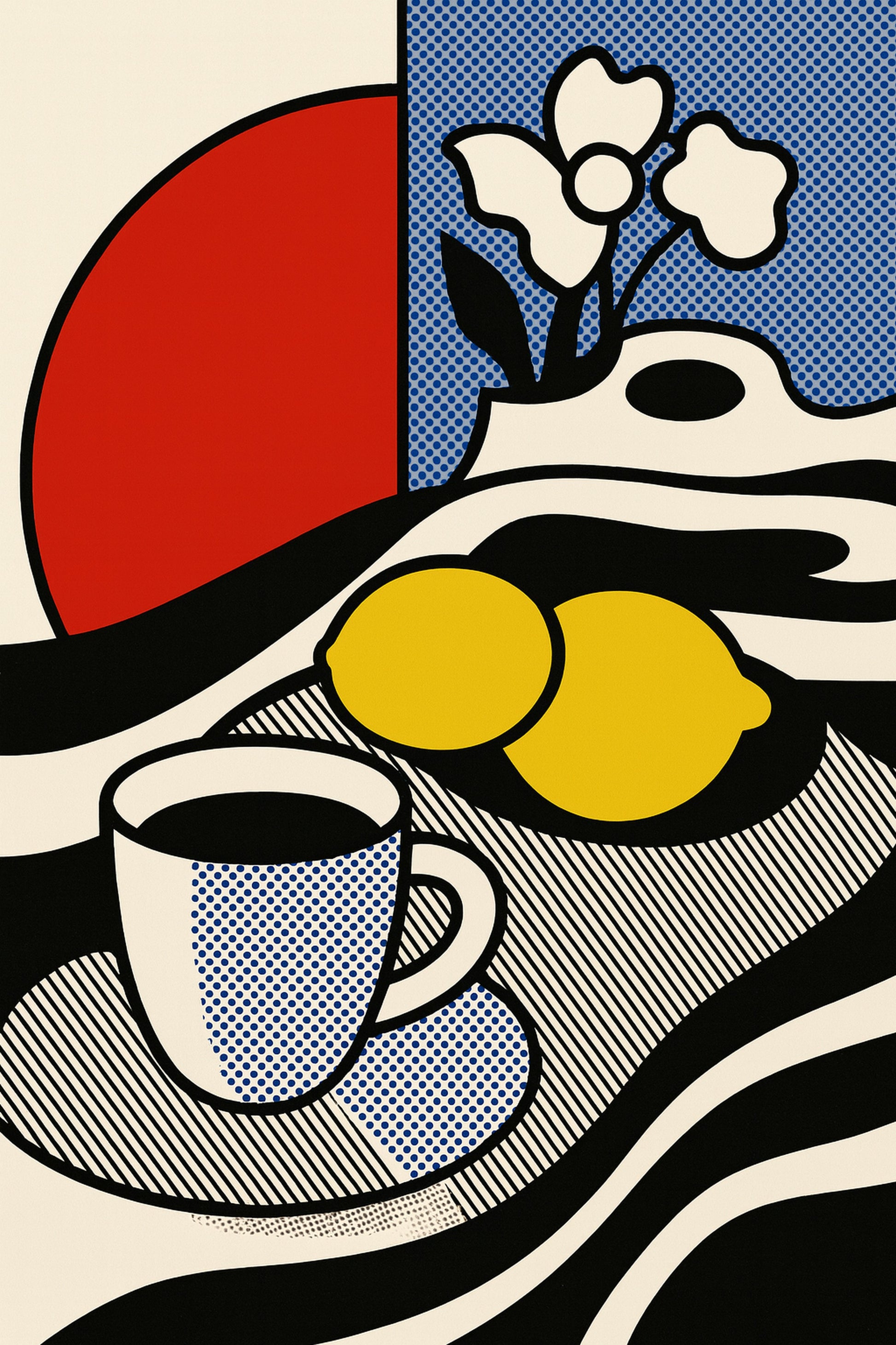 Bring instant energy and personality to your space with this Pop Art–inspired digital print featuring a striking coffee cup, zesty lemons, and bold graphic colors. Perfect for kitchens, dining areas, cafes, or anywhere that needs a pop of color and conversation.