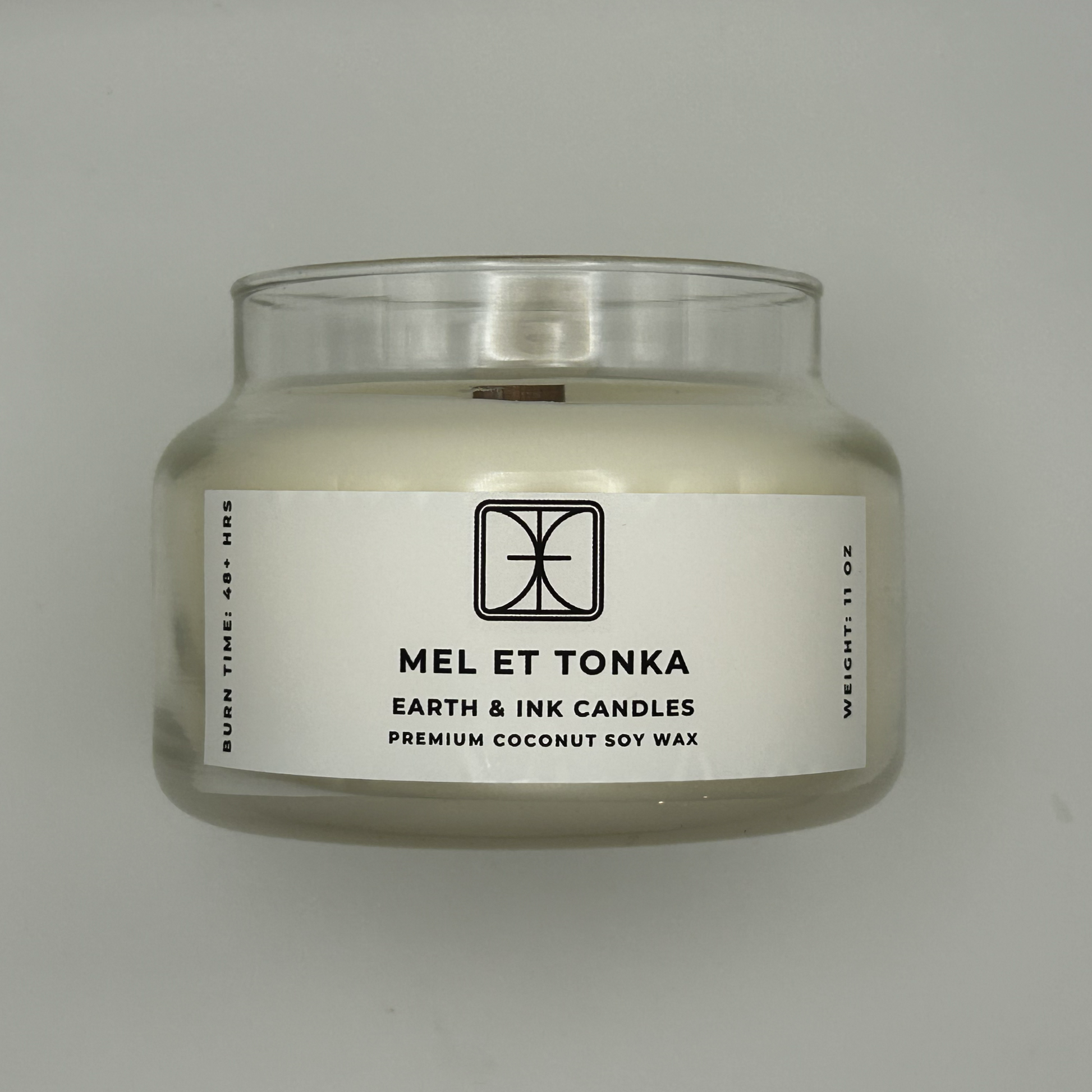 Mel et Tonka is a captivating blend of honey, spice, and tobacco leaf—cozy, polished, and quietly indulgent. It opens with a bright lift of bergamot and citrus peel, softened by herbal coriander. The heart unfolds into warm honey and amber, rich without feeling sugary, creating a refined glow in the room.